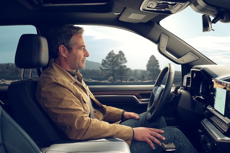 - 10-way power driver seat including lumbar control and 40/20/40 split-bench front seat with covered armrest storage and underseat storage