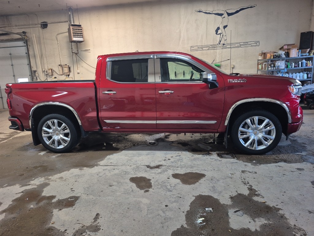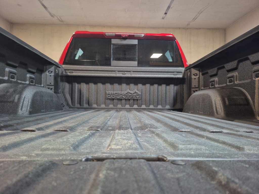 High Country Premium Package: Power Sunroof; 22 X 9 Painted Aluminum Wheels; P275/50R22SL AS BW Tires; All-Weather Floor Liner. Technology Package: 15 Diagonal Multicolor Head-Up Display; Rear Camera Mirror. Preferred Equipment Group 3LZ: Trailer Side Blind Zone Alert; Chrome Assist Steps; Driver Memory; Perforated Leather Seat Trim; SiriusXM with 360L; Power Sliding Rear Window with Rear Defogger; Safety Alert Seat; Ultrasonic Front and Rear Park Assist; Trailer Camera Provisions; Electric Rear-Window Defogger; Theft Deterrent System (unauthorized Entry); Front Rain-Sensing Wipers; Heated Steering Wheel; 120-Volt Interior Power Outlet; Heated Driver & Front Outboard Passenger Seats; Front Bucket Seats; Color-Keyed Carpeting Floor Covering; OnStar and Chevrolet Connected Services Capable; 2nd Row Heated Outboard Seats; Power Front Passenger Windows with Express Up/down; Front Carpeted Floor Mats; Rear Carpeted Floor Mats; 12.3 Multicolor Reconfigurable Digital Display; Body-Color Painted Mirror Caps; Power Rear Windows with Express Down; Integrated Trailer Brake Controller; HD Surround Vision; Ventilated Driver and Front Passenger Seats; Power Tilt and Telescoping Steering Column; Keyless Open and Start; Perimeter Lighting; Auto-Dimming Inside Rearview Mirror; LED Cargo Area Lighting; Bluetooth For Phone; Remote Vehicle Starter System; Trailering App; Floor Mounted Center Console; Bed View Camera; Rear Cross Traffic Braking; Electrical Steering Column Lock; Trailering Package; Up-Level Rear Seat with Storage Package; Standard Tailgate; 2 USB Data Ports; Front LED Fog Lamps; Chrome Recovery Hooks; Steering Wheel Audio Controls; Dual Rear USB Ports (charge Only); Adaptive Cruise Control; Universal Home Remote; 2-Speed Transfer Case; Deep-Tinted Glass; 10-Way Power Driver Seat with Lumbar; Chevytec Spray-On Black Bedliner; Dual Exhaust with Polished Outlets; Chevy Safety Assist; Hitch Guidance with Hitch View; Power Front Windows with Driver Express Up/down; Wrapped Steering Wheel; Power Tailgate; Rear Pedestrian Alert; 10-Way Power Passenger Seat Adjuster with Lumbar; Outside Heated Power-Adjustable Mirrors; Rear Wheelhouse Liners; Auto-Locking Rear Differential. 22 X 9 Painted Aluminum Wheels. Power Sunroof. Adaptive Ride Control Suspension. Radiant Red Tintcoat. Multi-Flex Tailgate. All-Weather Floor Liner. Wheel Locks (set of 4). **Equipment listed is based on original vehicle build and subject to change. Please confirm the accuracy of the included equipment by calling the dealer prior to purchase.**