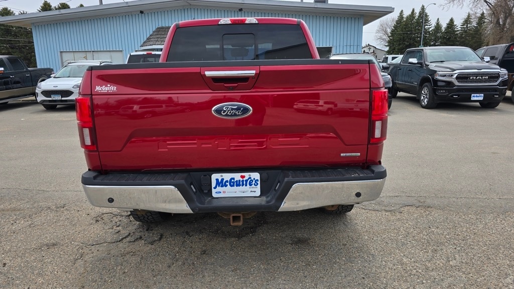 M J McGuire Company is pleased to offer this stout 2020 Ford F-150 Lariat in Red Beautifully equipped with Equipment Group 501A Mid (110V/400W Outlet, Power Glass Sideview Mirr w/Body-Color Skull Caps, Remote Start System w/Remote Tailgate Release, and Reverse Sensing System), GVWR: 6,600 lbs Payload Package, Lariat Chrome Appearance Package (Chrome 2-Bar Grille w/4 Minor Bars, Chrome Angular Step Bars, Chrome Door & Tailgate Handles w/Body-Color Bezel, Chrome Skull Caps on Exterior Mirrors, Single-Tip Chrome Exhaust, and Wheels: 18" Chrome-Like PVD), Trailer Tow Package (Class IV Trailer Hitch Receiver, Engine Oil Cooler, Pro Trailer Backup Assist, and Upgraded Front Stabilizer Bar), 4WD, 18" Machined-Aluminum Wheels, 3.55 Axle Ratio, 4-Wheel Disc Brakes, 7 Speakers, ABS brakes, Adjustable pedals, Air Conditioning, Alloy wheels, AM/FM radio: SiriusXM, Auto High-beam Headlights, Auto-dimming door mirrors, Auto-dimming Rear-View mirror, Automatic temperature control, Brake assist, Bumpers: chrome, Compass, Delay-off headlights, Driver door bin, Driver vanity mirror, Dual front impact airbags, Dual front side impact airbags, Electronic Locking w/3.55 Axle Ratio, Electronic Stability Control, Emergency communication system: SYNC 3 911 Assist, Engine Block Heater, Extended Range 36 Gallon Fuel Tank, Exterior Parking Camera Rear, Front anti-roll bar, Front Center Armrest w/Storage, Front dual zone A/C, Front fog lights, Front License Plate Bracket, Front reading lights, Front wheel independent suspension, Fully automatic headlights, Heated door mirrors, Heated front seats, Illuminated entry, Integrated Trailer Brake Controller, Leather-Trimmed 40/20/40 Front Seat, Low tire pressure warning, Memory seat, Occupant sensing airbag, Outside temperature display, Overhead airbag, Overhead console, Panic alarm, Passenger door bin, Passenger vanity mirror, Pedal memory, Power door mirrors, Power driver seat, Power passenger seat, Power steering, Power windows, Radio data system, Radio: AM/FM Stereo w/6 Speakers, Rear reading lights, Rear seat center armrest, Rear step bumper, Rear window defroster, Remote keyless entry, Security system, SiriusXM Radio, Speed control, Speed-sensing steering, Split folding rear seat, Steering wheel mounted audio controls, SYNC 3, Tachometer, Telescoping steering wheel, Tilt steering wheel, Traction control, Trip computer, Turn signal indicator mirrors, Variably intermittent wipers, Ventilated front seats, Voice-Activated Touchscreen Navigation, and Voltmeter!