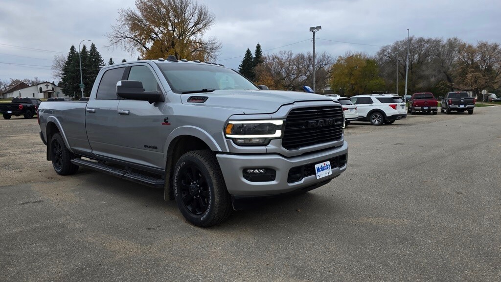 M J McGuire Company is excited to offer this handsome 2021 Ram 2500 Laramie in Billet Silver Metallic Clearcoat Beautifully equipped with Bed Utility Group (LED Bed Lighting, MOPAR Deployable Bed Step, and MOPAR Spray In Bedliner), Cold Weather Group (Engine Block Heater and MOPAR Winter Front Grille Cover), Laramie Level B Equipment Group (1-Year SiriusXM Guardian Trial, 17 Speaker harman kardon Premium Sound, 2nd Row In Floor Storage Bins, 4G LTE Wi-Fi Hot Spot, 5-Year SiriusXM Traffic Service, 5-Year SiriusXM Travel Link Service, 8.4" Touchscreen Display, Apple CarPlay, Auto High Beam Headlamp Control, Disassociated Touchscreen Display, Exterior Mirrors w/Memory, Foam Bottle Insert (Door Trim Panel), For Details Visit DriveUconnect.com, Google Android Auto, GPS Antenna Input, GPS Navigation, HD Radio, Heated Second Row Seats, Integrated Center Stack Radio, Integrated Voice Command w/Bluetooth, Mirror-Mounted Aux Reverse Lamps, Off-Road Information Pages, Power Adjustable Convex Aux Mirrors, Power Adjustable Pedals w/Memory, Power Chrome Tow Mirrors w/Convex Spotter & Memory, Radio: Uconnect 4C Nav w/8.4" Display, Radio/Driver Seat/Mirrors/Pedals Memory, Rain Sensitive Windshield Wipers, Remote Tailgate Release, SiriusXM Satellite Radio, SiriusXM Traffic Plus, SiriusXM Travel Link, and Ventilated Front Seats), Night Edition (Black Exterior Mirrors, Black Exterior Truck Badging, Black Headlamp Bezels, Black Interior Accents, Black Ram Head Tailgate Badge, Black Tail Lamp Bezels, Black Wheel Center Hub, Body Color Door Handles, Body Color Grille Surround, Gloss Black Grille Billets/Accents, Painted Front Bumper, Painted Rear Bumper, Power Black Tow Mirrors w/Convex Spotter & Memory, and Wheels: 20" x 8.0" Black Painted Aluminum), Protection Group (Tow Hooks), Quick Order Package 2HH Laramie, Towing Technology Group B (CTR Stop Lamp w/Cargo View Camera, Surround View Camera System, and Trailer Reverse Guidance), 10 Speakers, 115V Auxiliary Rear Power Outlet, 12" Touchscreen Display, 2 Way Rear Headrest Seat, 220 Amp Alternator, 3.73 Axle Ratio, 4 Way Front Headrests, 4-Wheel Disc Brakes, 50 Gallon Fuel Tank, 5th Wheel/Gooseneck Towing Prep Group, ABS brakes, Active Noise Control System, Adjustable pedals, Air Conditioning, Air Suspension Decal, Alloy wheels, AM/FM radio: SiriusXM, Anti-Spin Differential Rear Axle, Apple CarPlay/Android Auto, Auto Level Rear Air Suspension, Auto-dimming Rear-View mirror, Automatic temperature control, Brake assist, Bumpers: chrome, Clearance Lamps, Compass, Delay-off headlights, Driver door bin, Driver vanity mirror, Dual front impact airbags, Dual front side impact airbags, Electronic Stability Control, Electronically Controlled Throttle, Front anti-roll bar, Front Center Armrest w/Storage, Front dual zone A/C, Front fog lights, Front License Plate Bracket, Front reading lights, Front Seat Back Map Pockets, Fully automatic headlights, Garage door transmitter, Heated door mirrors, Heated Front Seats, Heated front seats, Heated Steering Wheel, Heated steering wheel, Illuminated entry, Leather steering wheel, Leather Trim 40/20/40 Bench Seat, Low tire pressure warning, MOPAR Front & Rear Rubber Floor Mats, Occupant sensing airbag, Outside temperature display, Overhead airbag, Overhead console, Painted Flat Wheel-to-Wheel Side Steps, Panic alarm, ParkView Rear Back-Up Camera, Passenger door bin, Passenger vanity mirror, Power 2-Way Driver Lumbar Adjust, Power 2-Way Passenger Lumbar Adjust, Power Adjust 8-Way Driver Seat, Power Adjust 8-Way Front Passenger Seat, Power door mirrors, Power driver seat, Power passenger seat, Power steering, Power windows, Radio data system, Radio: Uconnect 12.0 w/Navigation, Radio: Uconnect 4 w/8.4" Display, Rear 60/40 Folding Seat, Rear anti-roll bar, Rear reading lights, Rear seat center armrest, Rear step bumper, Rear window defroster, Remote keyless entry, Security system, SiriusXM w/360L, Speed control, Split folding rear seat, Steering wheel mounted audio control